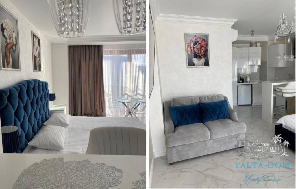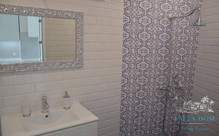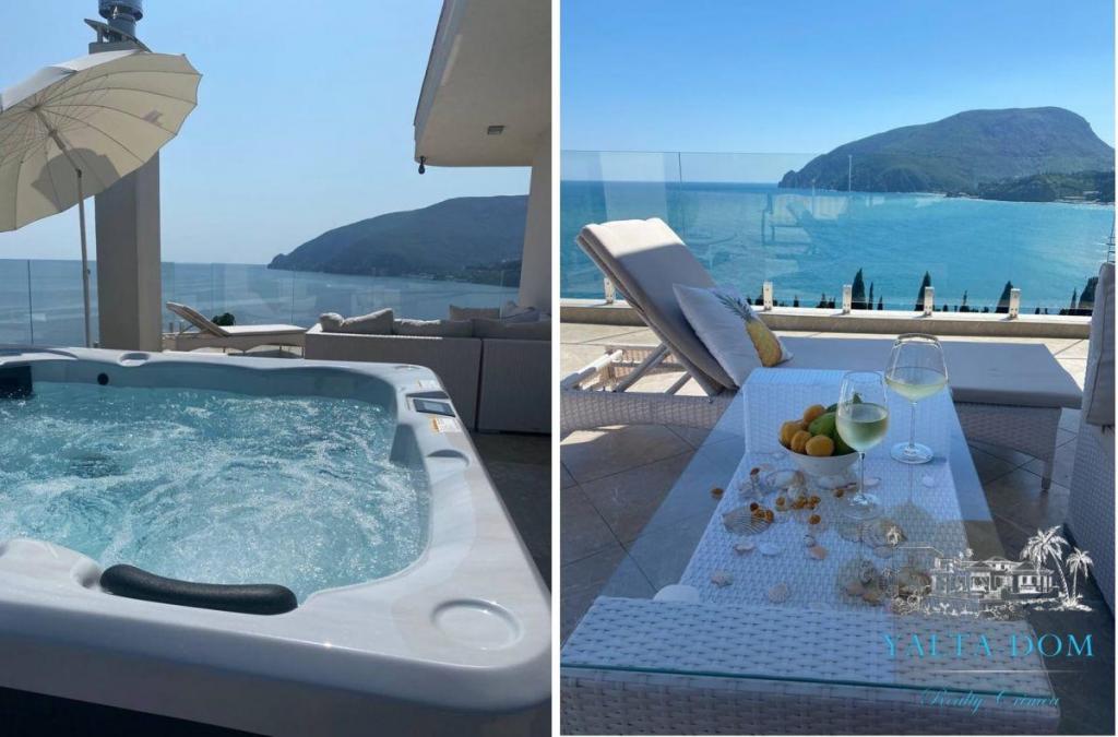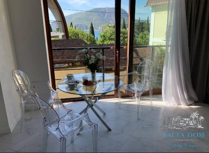 Стильные новые апартаменты с видовой террасой и джакузи в парковой зоне поселка Утес, до моря 100 метров по прямой. Апартамент-студия на втором этаже, площадь 34 квадратных метра. Панорамное остекление, удобная двуспальная кровать, комфортный диван, кондиционер, Smart TV, кофемашина, чайник, кухня, современная ванная комната. С террасы открывается шикарный вид на бухту и гору Аю-Даг. В поселке расположены кафе, рестораны и магазины. По соседству находятся парки «Карасан», «Айвазовское».