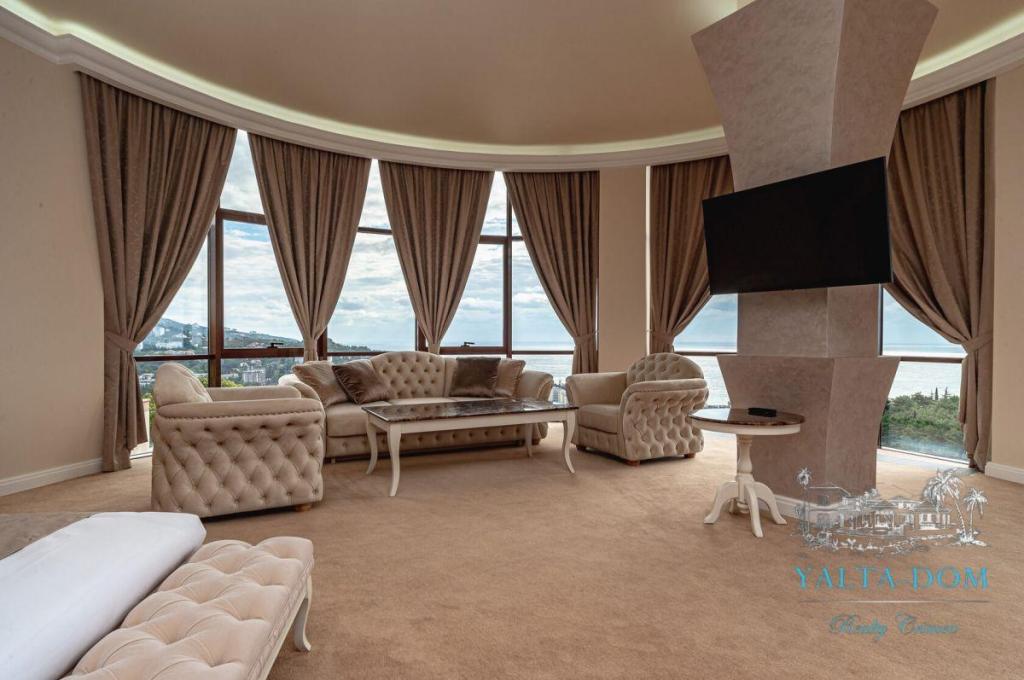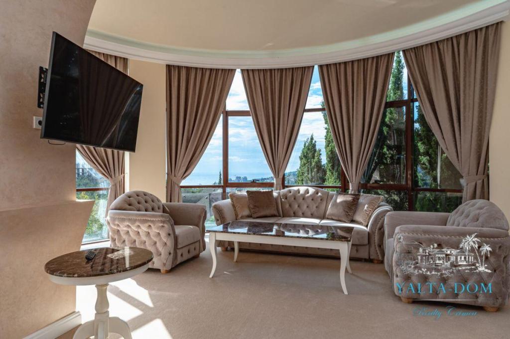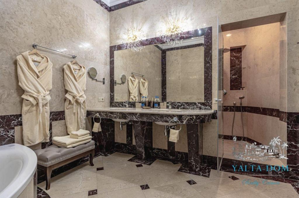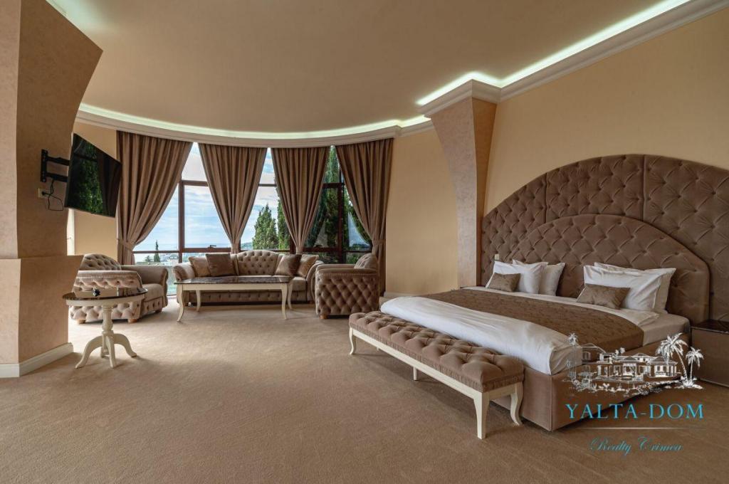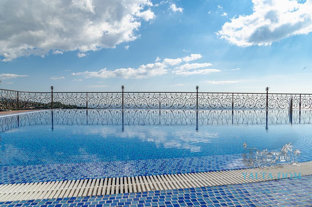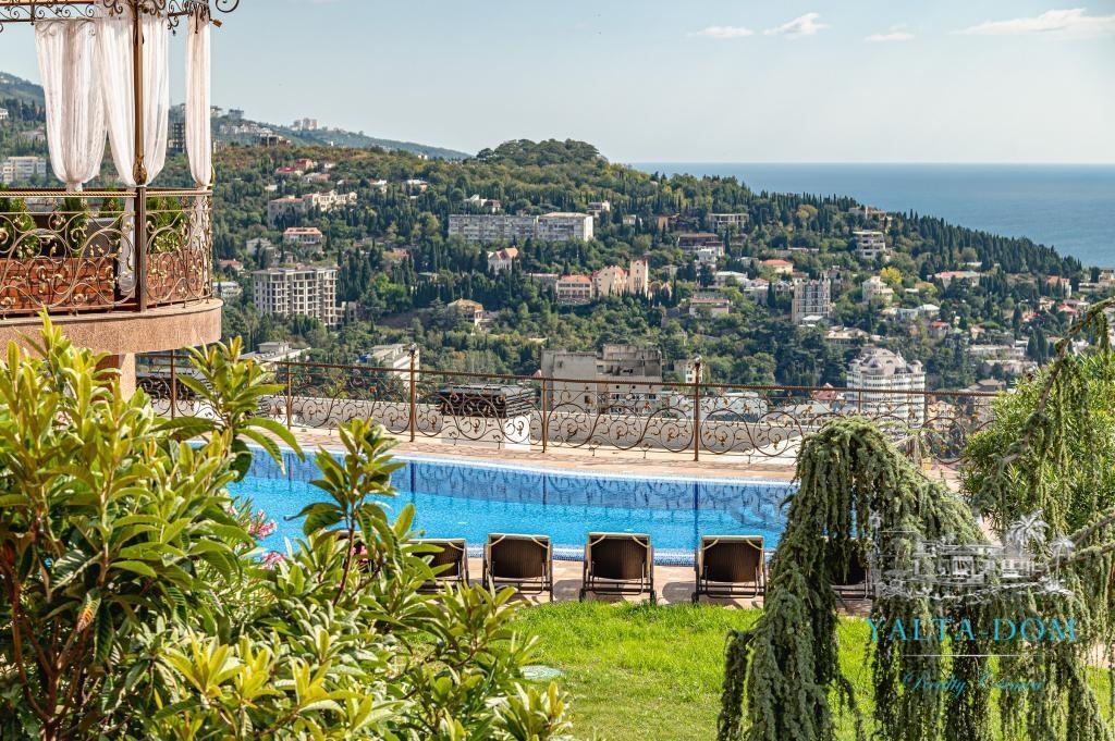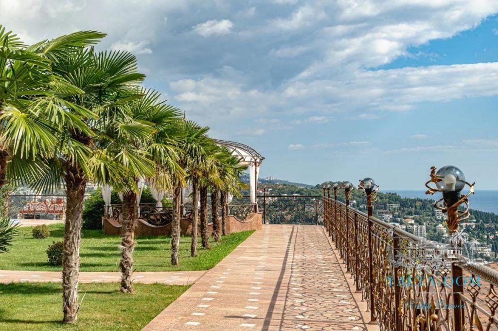 В распоряжении гостей благоустроенная территория виллы с прогулочной зоной, беседкой в восточном стиле, зоной барбекю, экзотическими деревьями, фонтаном с подсветкой, открытым подогреваемым бассейном; к парадному входу ведут две симметричные мраморные лестницы. Потрясающие виды на море и горы, непередаваемая атмосфера роскоши сделают отдых наших гостей незабываемым.