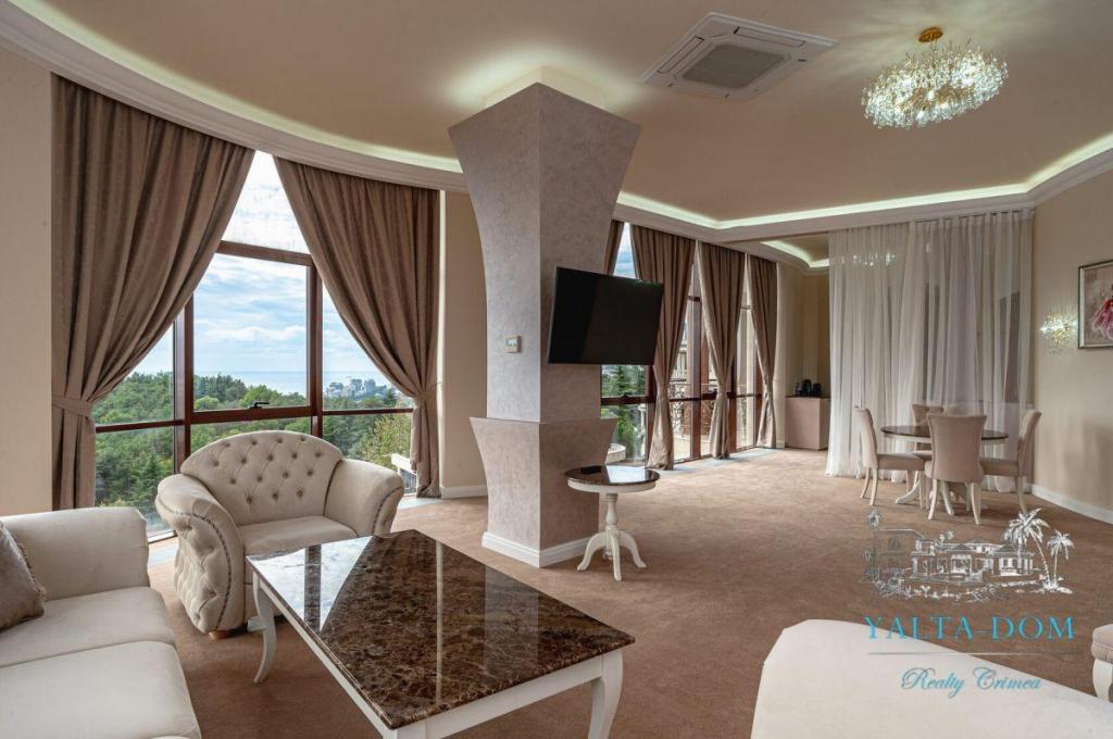 Роскошный двухкомнатный апартамент с видом на море и выходом на открытую террасу с летней мебелью, второй этаж. Дизайн интерьера в приятных светлых тонах, отделка материалами элит-класса, апартамент общей площадью сто квадратных метров.