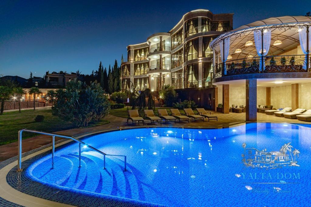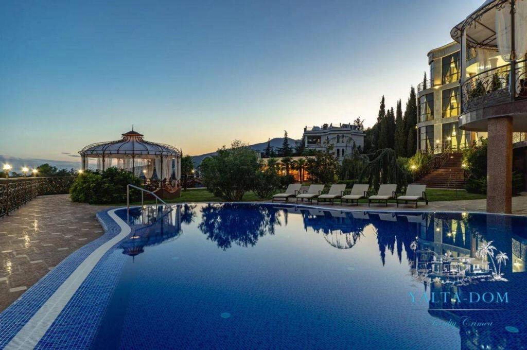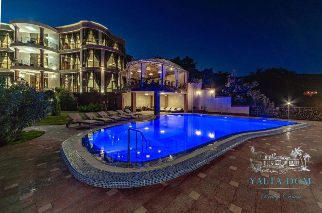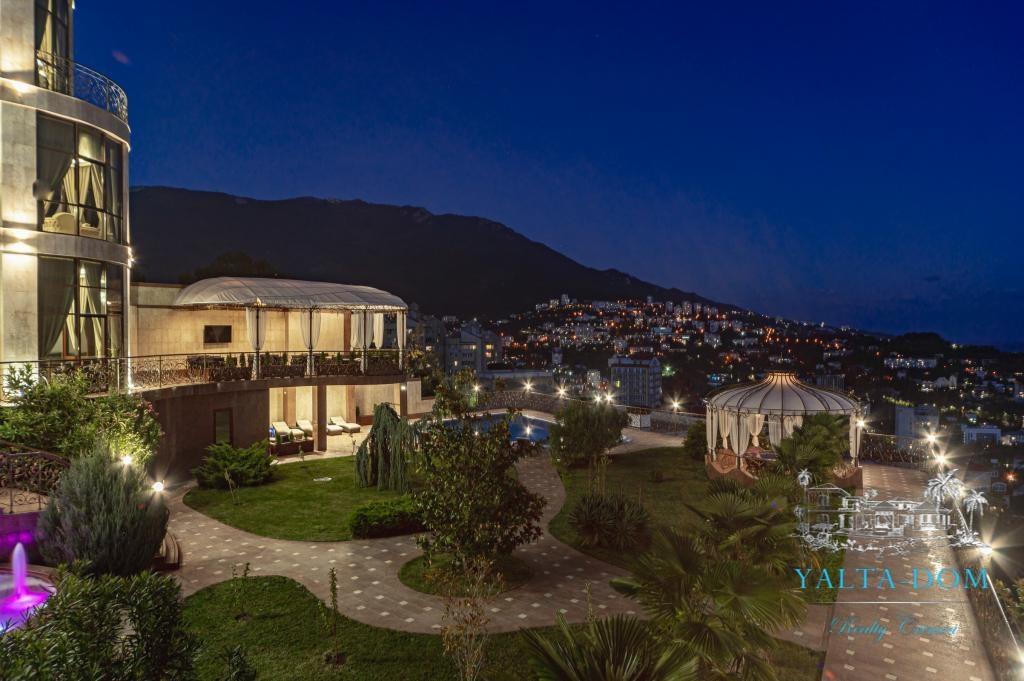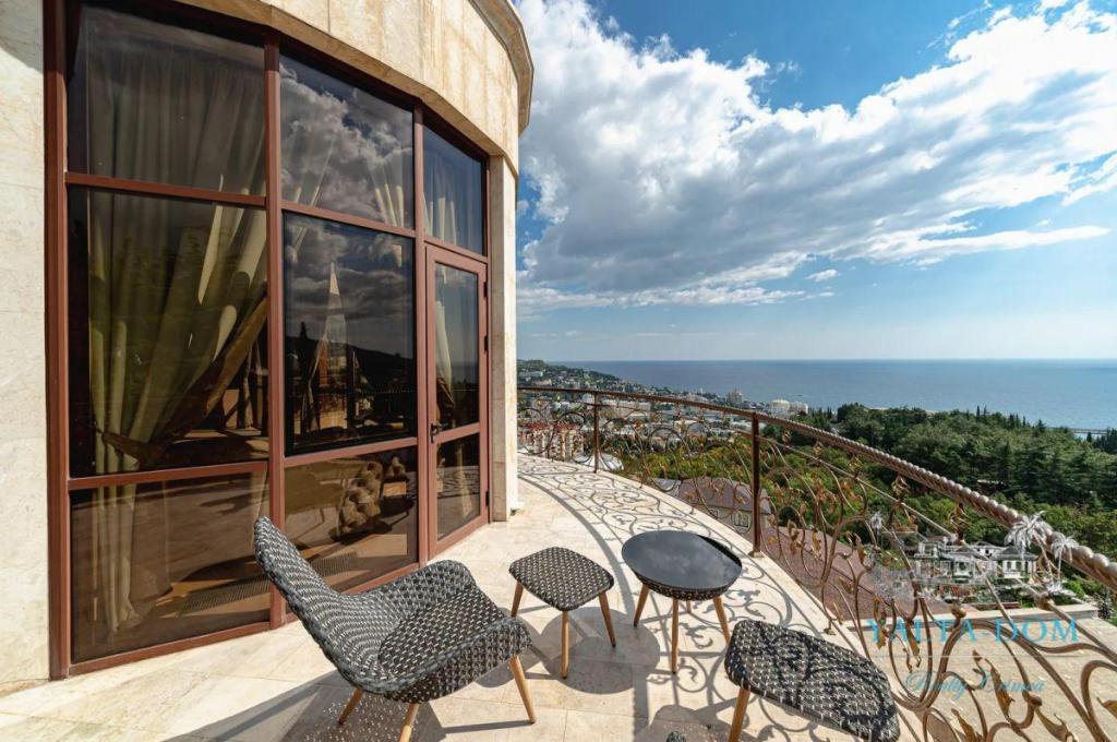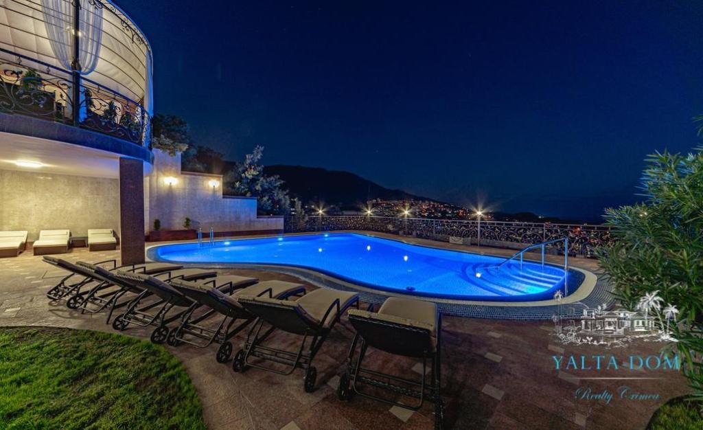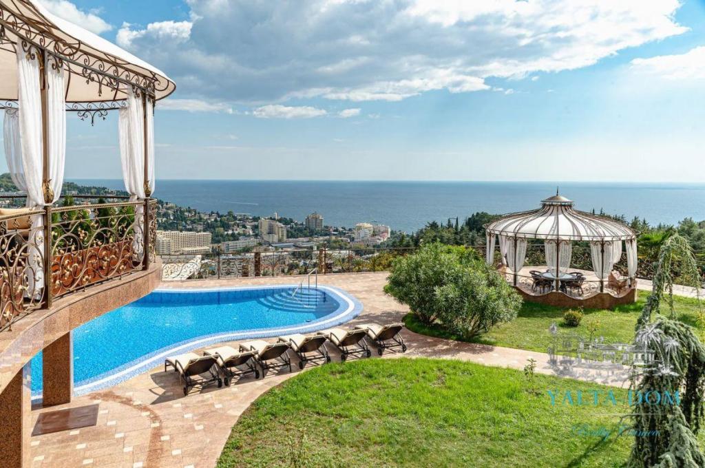 В распоряжении гостей благоустроенная территория виллы с прогулочной зоной, беседкой в восточном стиле, зоной барбекю, экзотическими деревьями, фонтаном с подсветкой, открытым подогреваемым бассейном; к парадному входу ведут две симметричные мраморные лестницы. Потрясающие виды на море и горы, непередаваемая атмосфера роскоши сделают отдых наших гостей незабываемым.