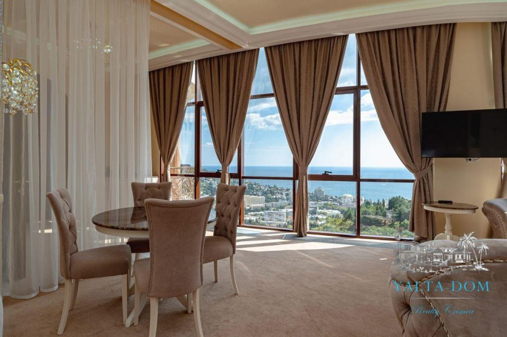 Роскошный двухкомнатный апартамент с видом на море и выходом на открытую террасу с летней мебелью. Дизайн интерьера в приятных светлых тонах, отделка материалами элит-класса, апартамент общей площадью сто квадратных метров.
