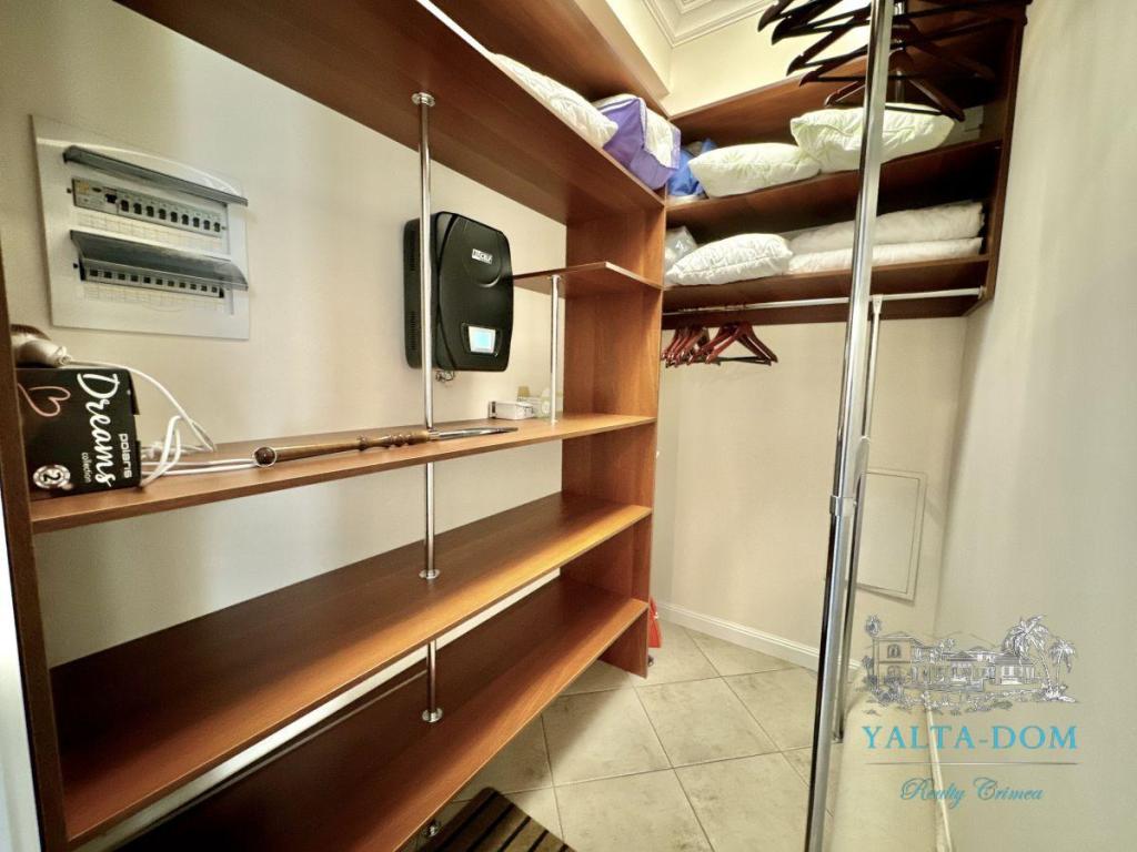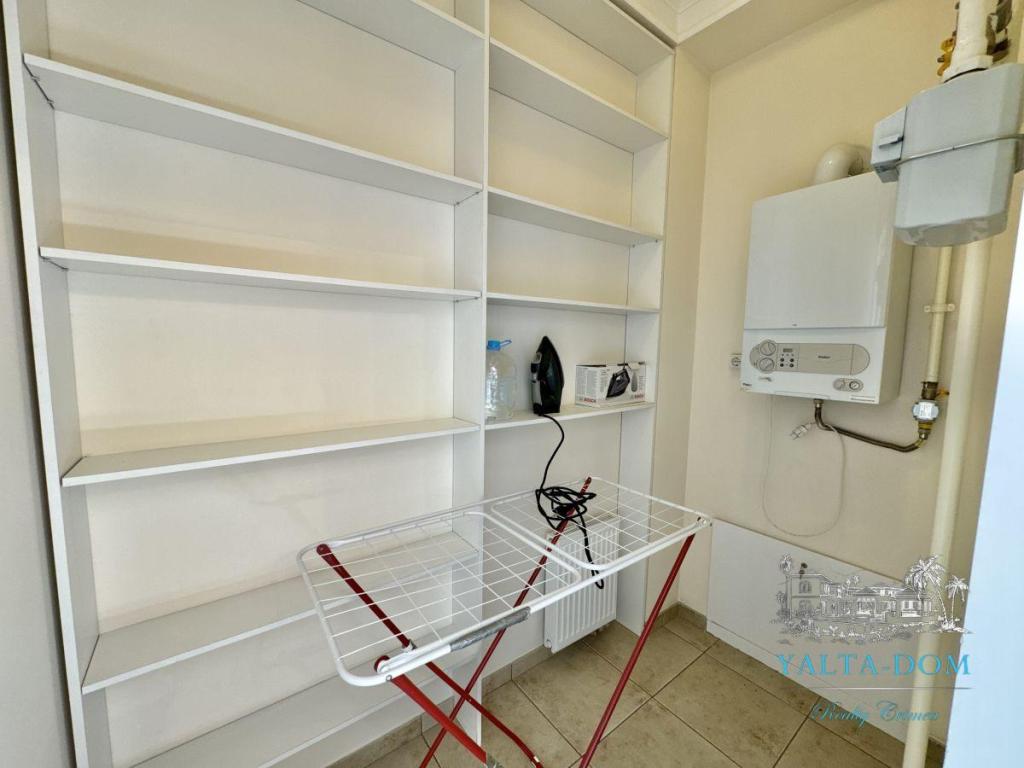 Квартира располагает холлом, гостиной, кухней-столовой, санузлом, кабинетом с видом на море, спальней, комнатой отдыха (можно оборудовать под вторую спальню) с видом на море и гардеробной. Вся необходимая бытовая техника, включая посудомоечную машину, также есть в наличии. Отопление в квартире осуществляется газовым котлом, что обеспечивает комфортный уровень тепла.