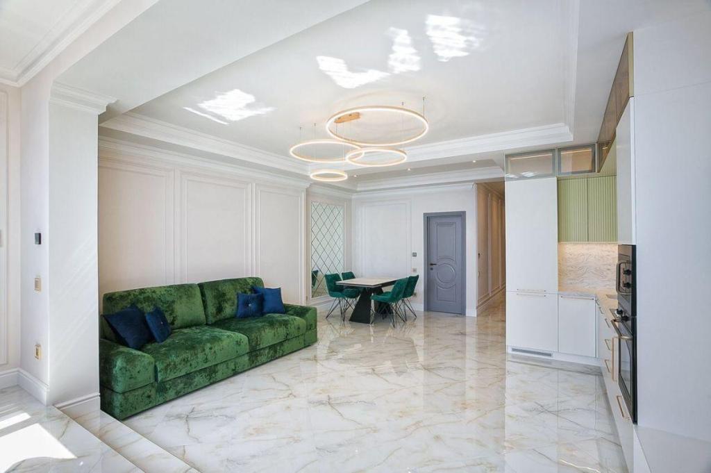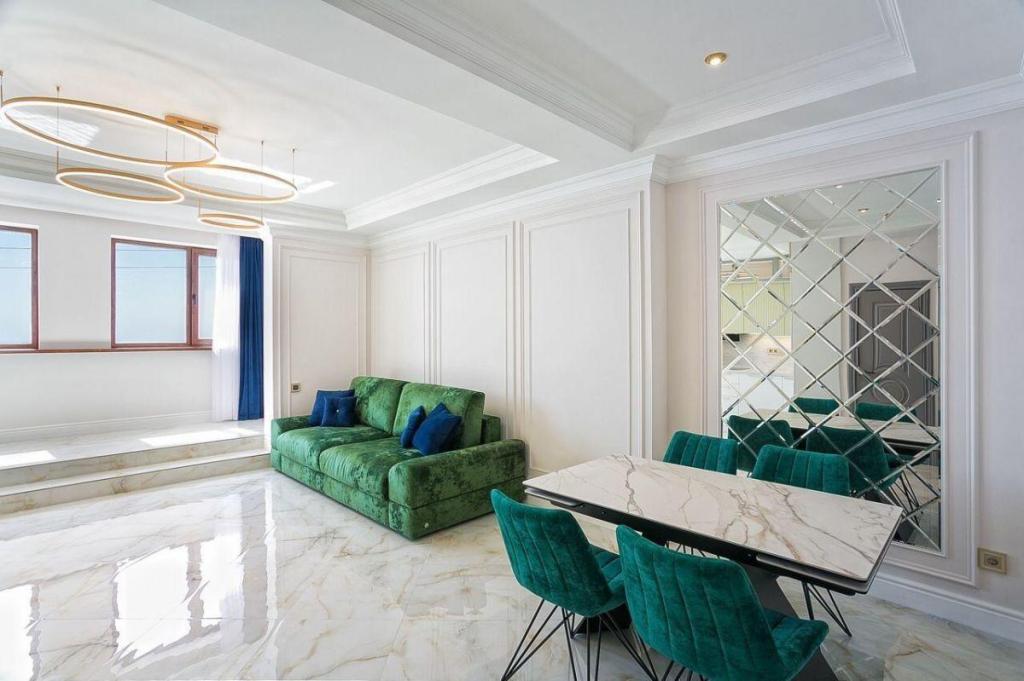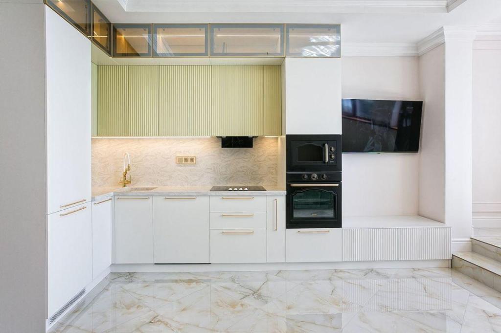 Квартира с дизайнерским ремонтом, всей необходимой мебелью и техникой (TV, стиральная и посудомоечная машины, духовой шкаф, микроволновая печь, варочная поверхность, холодильник, встроенный фильтр питьевой воды, кондиционеры, теплые полы, подключен интернет).